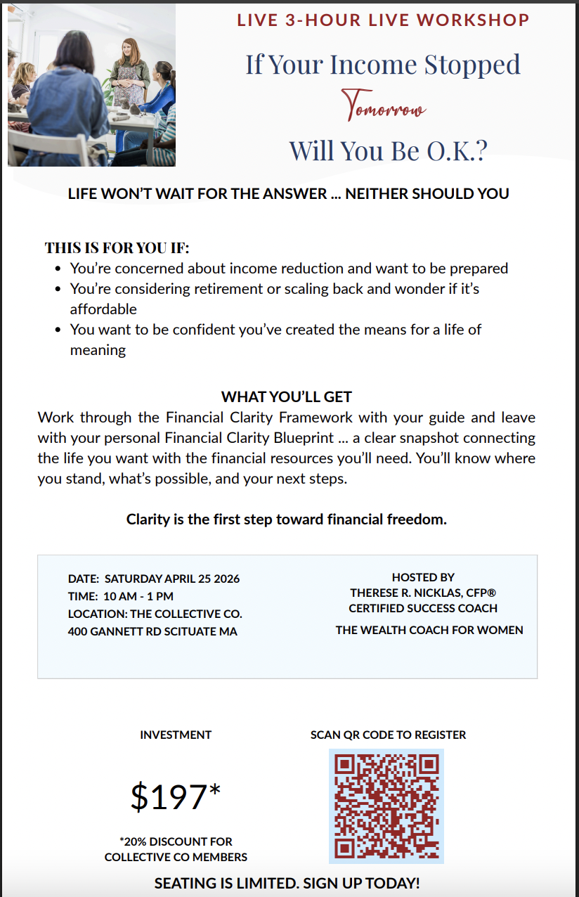 Join certified success coach and CC member Therese Nicklas for an in person workshop on financial clarity for women who want a plan for income or career change.